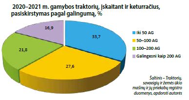 Bendrai 2021 m. įregistruoti 2 362 vienetai 2020–2021 m. gamybos technikos. Atmetus 1 062 keturračius, į registrą įtraukta 1 300 įvairios galios 2020–2021 m. gamybos traktorių, o tai yra 346 vnt. arba 26,6 proc. daugiau nei 2020 m. (954 vnt.).