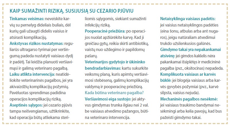 - Moksliniai tyrimai įrodo, kad cezario pjūvis, atliktas tinkamu laiku ir patyrusio veterinaro, yra saugus ir karvei, ir veršeliui. Dauguma operuotų karvių sugeba išlaikyti reprodukcinę funkciją ir produktyvumą.