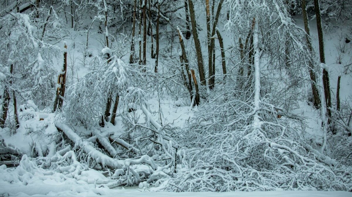 „Dėl susikaupusio sniego svorio dažniausiai lūžta medžių viršūnės ir šakos, ypač spygliuočių, ant kurių susilaiko didesni sniego kiekiai“, – sako V. Vasiliauskas.