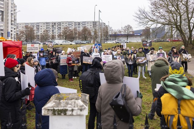 Vilnius. Apie šimtas žmonių protestavo prie Valstybinės maisto ir veterinarijos tarnybos (VMVT) prieš paršelių kastravimą be nuskausminamųjų.