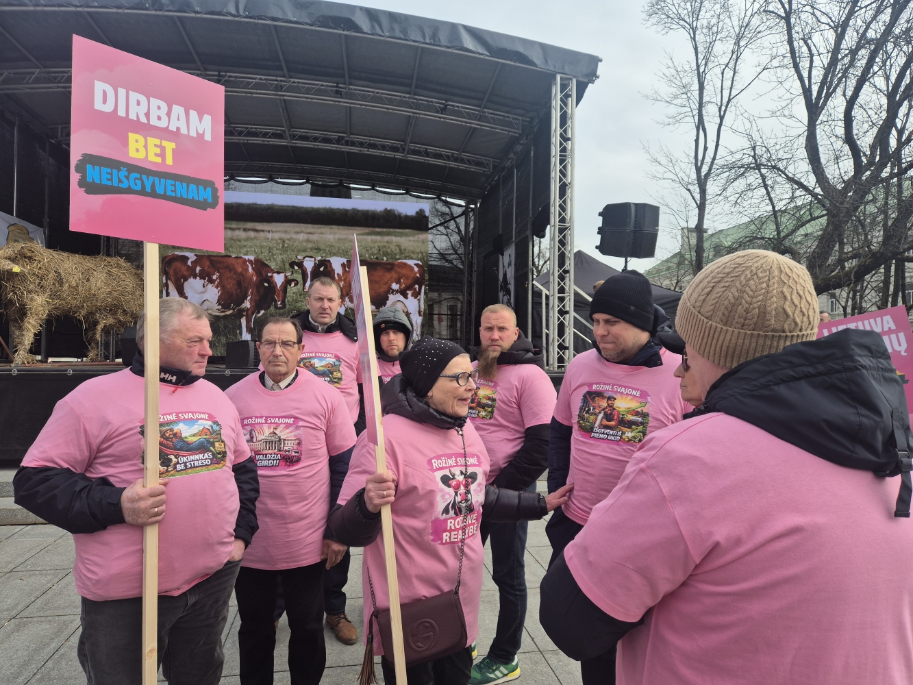 Premjerė Inga Ruginienė šiuo metu lankosi Azerbaidžiane, tad su protestuotojais susitikti žadėjo ateiti žemės ūkio ministras Andrius Palionis.