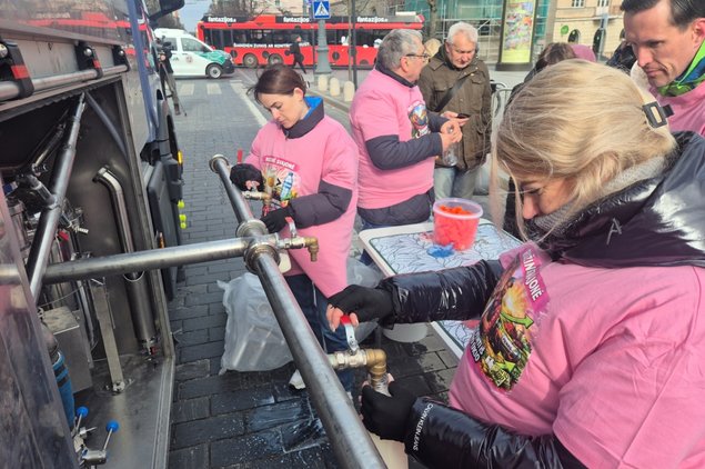 Bandydami atkreipti dėmesį į tai, kokia menka dalis jiems tenka nuo parduotuvių lentynose parduodamo pieno, ūkininkai vilniečiams jį dalija nemokamai.