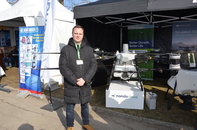 Tikslumo paieškos atsispindi ir agrodronuose. „Nando droid“ vadovas Mykolas Treigys pristatė DJI Agras T100 kaip vieną didžiausių savo klasėje – jo purškimo talpa siekia 100 l, barstymo – 100 kg, o našumas gali siekti iki 36 ha per valandą.