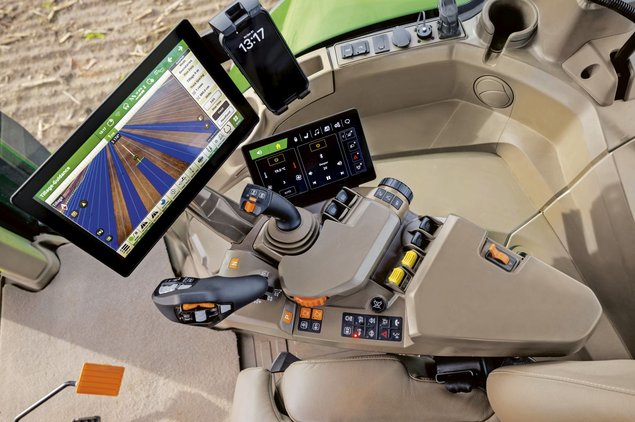Standartiškai diegiami StarFire 7500 imtuvas, G5Plus ekranas ir JDLink ryšys – visa tai leidžia naudotis pažangiomis tikslaus ūkininkavimo funkcijomis, įskaitant automatizuotą apsisukimą, orientavimo planų kūrimą ir duomenų perdavimą į „John Deere“ operacijų centrą.