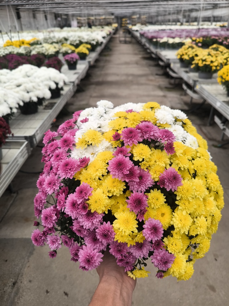 Daugelį metų pirkėjų simpatijų ir populiarumo nepraranda stambiažiedės chrizantemos Komoda Blanc. Jų žiedai balti, pilnaviduriai, plunksniški, lyg vaškiniai. Jų įvairovę papildo geltonžiedės chrizantemos Caracas Jaune, įvairiaspalvės Cosmo Mix.