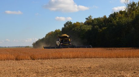 Dorojant sojų derlių pakaunėje išbandytas didžiausias pasaulyje kombainas