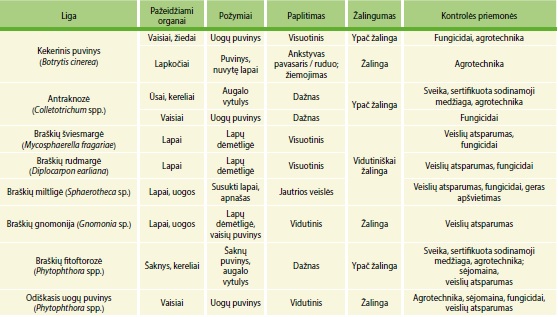 Lapų gnomonija laikoma nelabai žalinga braškių liga, nors pastaruoju metu stebime šios ligos plitimo aktyvumą, tai siejama su braškių auginimo technologijų intensyvėjimu, kai pasirenkamos sparčiai augančios braškių veislės. Dėmėtligė daugiausia pažeidžia jau brandžius lapus, bet gali sukelti minkštą nokstančių uogų puvinį.