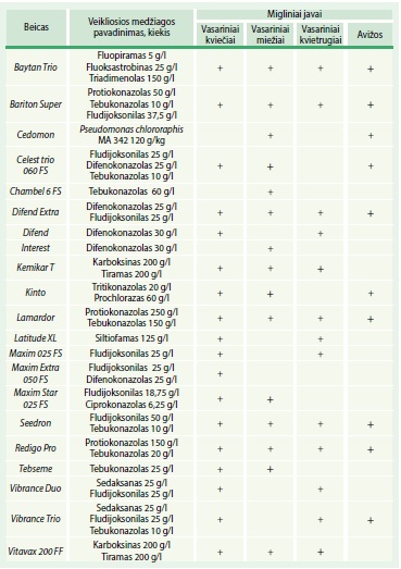 Lietuvoje beicų pasirinkimas didelis. Svarbiausia juos naudoti pagal paskirtį. Lentelėje nurodyta, kuris beicas kuriam augalui skirtas. Etiketėse visuomet galima rasti tikslią informaciją, nuo kokių ligų konkretus produktas veiksmingas.