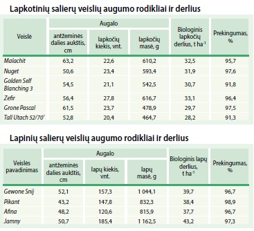 Europoje daugiausia salierų veislių sukuriama Nyderlanduose, o iš viso ES bendrajame daržovių rūšių veislių kataloge yra įrašyta daugiau kaip pusantro šimto salierų veislių. LAMMC Sodininkystės ir daržininkystės instituto lauko sėjomainoje buvo tirta 20 skirtingų veislių ir hibridų salierų produktyvumas. Gauti duomenys pateikti lentelėse.