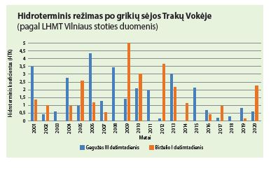 Per pastaruosius du dešimtmečius po grikių sėjos gegužės pabaigoje arba birželio pradžioje dažniau pasitaikė kontrastingos sąlygos: 8 metus buvo šlapias (HTK > 1,5) gegužės III dešimtadienis, 6 metus – birželio I dešimtadienis. Tokiais metais grikiams sudygti labai trūko šilumos. Tačiau dar dažniau negu perteklinė drėgmė pasitaikė sausringos sąlygos (kai HTK < 1,5) – 10 kartų gegužės III dešimtadienį ir 11 kartų – birželio I dešimtadienį. Palankiomis sąlygomis grikiai sudygsta po 4–5 dienų, tačiau nepalankiomis dygsta dvigubai ar net trigubai ilgiau.