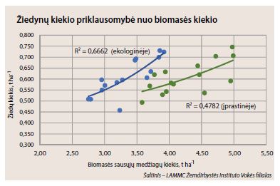Ryšys tarp biomasės, žiedynų kiekio ir derliaus