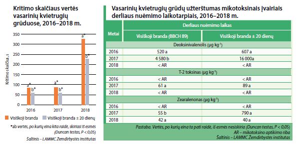 Derliaus nuėmimo laikas turi reikšmingos įtakos vasarinių kvietrugių grūdų užterštumui mikotoksinais, taip pat kai kuriems grūdų kokybės parametrams.