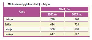 Palyginus kaimyninių Baltijos šalių duomenis, matyti, kad minimalus atlygis didžiausias Lietuvoje, Estijos ir Lenkijos panašūs, bet mažesni nei Lietuvoje, o mažiausias Latvijoje.