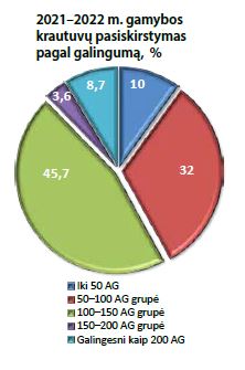 Mažiausios galios įregistruoti krautuvai (16 kW) – du Avant 423, didžiausios (321 kW) – Caterpillar 982M. Krautuvai, kurių galia iki 50 AG, sudaro 10 proc. pernai įregistruotų 2021– 2022 m. gamybos krautuvų (50 vnt.), 50–100 AG grupė – 32 proc. (162 vnt.); 100–150 AG – 45,7 proc. (231 vnt.), 150–200 AG – 3,6 proc. (18 vnt.) ir galingesni kaip 200 AG – 8,7 proc. naujų krautuvų rinkos.
