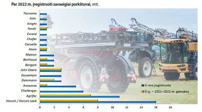 Lietuvoje 2022 m. įregistruoti devynių gamintojų 25 nauji savaeigiai pesticidų purkštuvai.