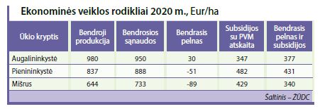 Vertinant ekonominės veiklos rodiklius, tenkančius 1 ha žemės ūkio naudmenų, galima matyti, kad pelningiausiai dirba augalininkystės ūkiai, subsidijos taip pat labai padeda tiek pienininkystės, tiek mišriems ūkiams. Nors tiesioginės sąsajos tarp pelno ir konkurencingumo nėra, tačiau pelningumas duotuoju laikotarpiu užtikrina ir ūkio konkurencingumą.