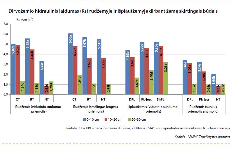 - dirvožemio genetinis tipas ir jo granuliometrinė sudėtis buvo lemiami veiksniai, darantys įtaką žemės dirbimo intensyvumo poveikiui dirvožemio fizikinėms ir hidrofizikinėms savybėms. Įprastas ir supaprastintas žemės dirbimas, įskaitant ir tiesioginę sėją, gali būti sėkmingai taikomas ir rudžemiuose, ir išplautžemiuose;