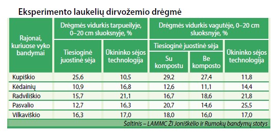 Siekiant išlaikyti ūkius konkurencingus, ieškoma kitų žemės dirbimo ir sėjos metodų, taip pat tręšimo technologijų, kurios padėtų mažinti nepalankių aplinkos sąlygų įtaką pasėlių derliui. Ką parodė tiesioginės juostinės sėjos eksperimentai?