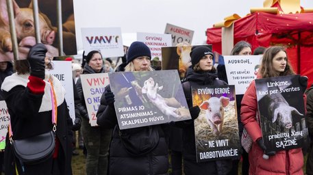 Vilnius. Apie šimtas žmonių protestavo prie Valstybinės maisto ir veterinarijos tarnybos (VMVT) prieš paršelių kastravimą be nuskausminamųjų. Daugiau