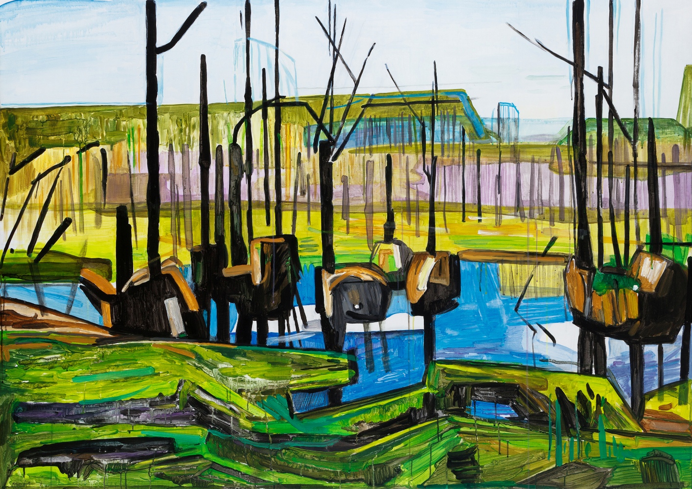 „Savo darbais kalbu apie juntamą žmogaus buvimą šalia. Kad ten, kur matyti kažkas gamtoje, gali būti kažkoks likęs pastatas, stogas, kurį nubrėžiu abstrakčiai, bet gali būti ir miškas. Iš jo, kaip Marselio Prusto knygose, man kyla medžių viršūnės, kurias galima atpažinti ir kaip bažnyčių varpines. Taip viskas kuriasi ir kol kas neišsenka.“