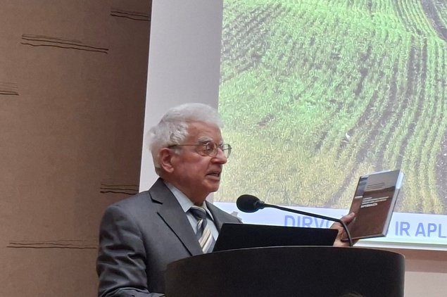 Prof. emeritas habil. dr. Algirdas Juozas Motuzas apžvelgė Lietuvos dirvožemininkų draugijos istoriją, kuri sugulė į knygą