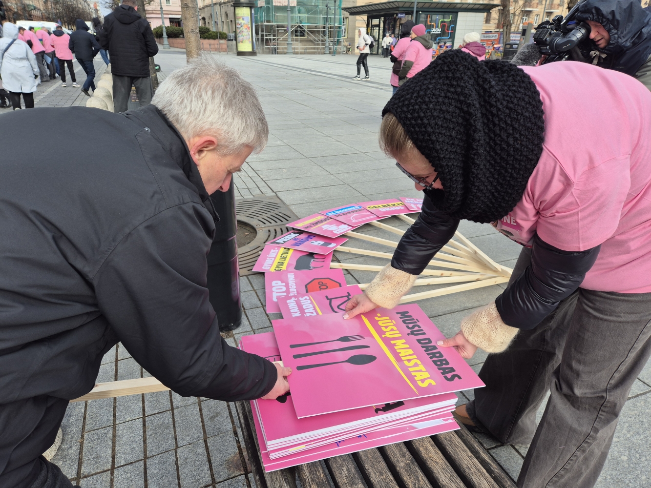 Bandydami atkreipti dėmesį į tai, kokia menka dalis jiems tenka nuo parduotuvių lentynose parduodamo pieno, ūkininkai vilniečiams jį dalija nemokamai.