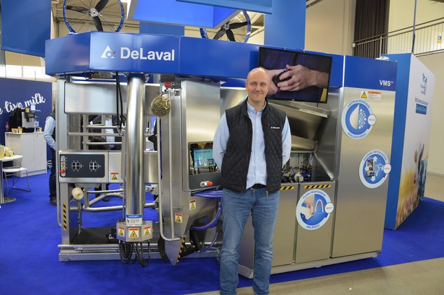 „DeLaval Lietuva“ pardavimų vadovas Tadas Gudauskas pristatė Flow-responsive™ technologiją, nuo šių metų pradžios diegiamą VMS V300 robotuose