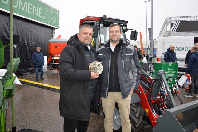 Valtra G135 CVT gautu medaliu džiaugėsi (iš kairės) „Rovaltra“ pardavimų vadovas Justas Lukštas ir vadybininkas Justas Žalys