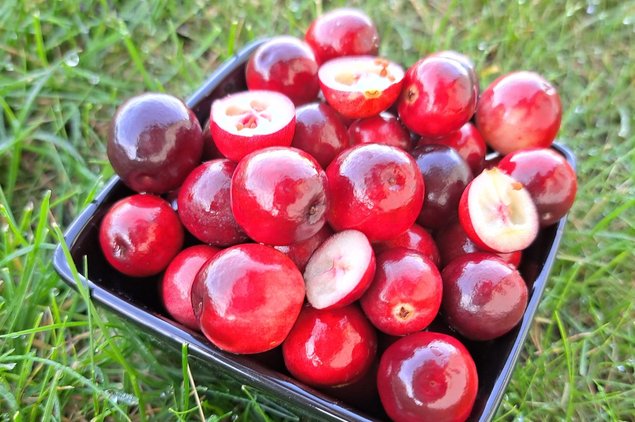Klaipėdos r. / Kauno r. Vėliausiai rudenį derančios stambiauogės spanguolės prailgina šių uogų sezoną sode.