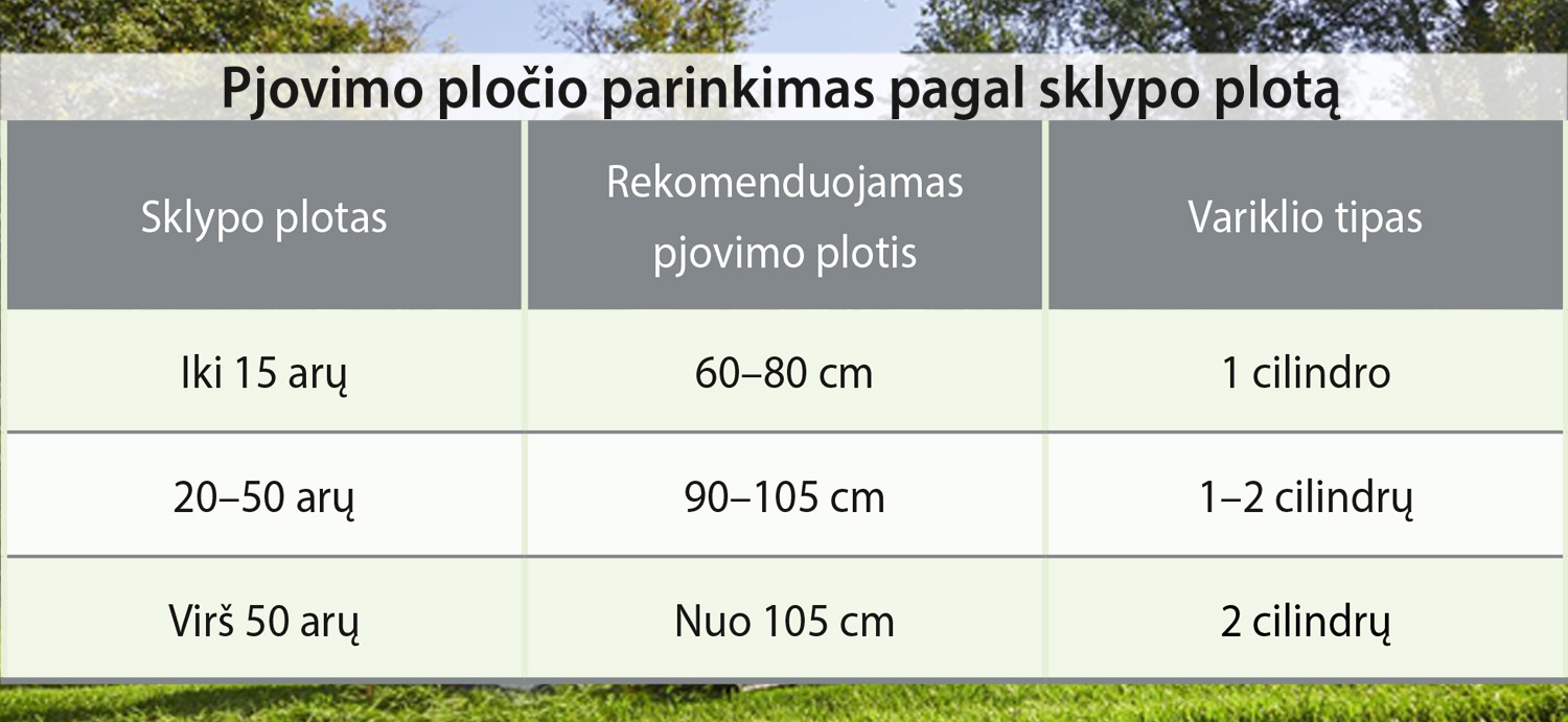 Vejos plotas ir sodo traktoriukai: koks pjovimo plotis optimalus?